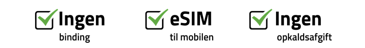 - Du kan bruge hele din tale-, SMS- og MMS pakke, samt en andel af datapakken i EU - det er inkluderet i abonnementet.
