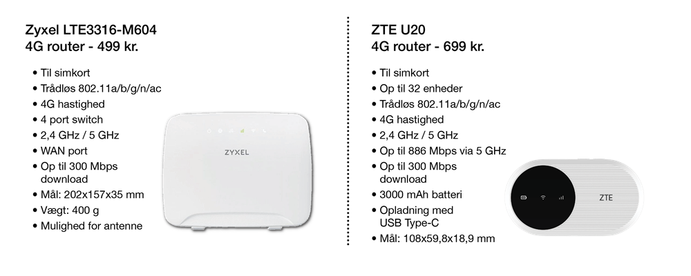 Hos SAFmobil kan du tilkøbe en router, der kører 4G hastighed. Hastigheden afhænger af din geografiske placering.